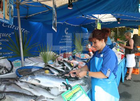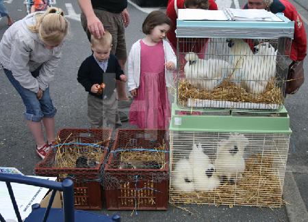 Hühner zum Verkauf am Markt von Lesneven, Bretagne