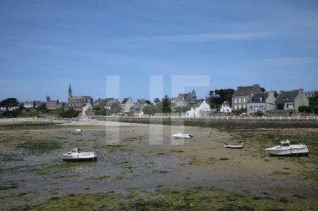 Blick auf den Hafen der Ile de Batz bei Ebbe