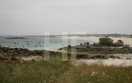 Landschaft mit Boot bei Plounéour-Trez, Bretagne
