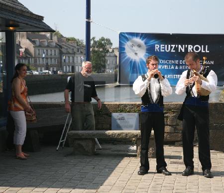 Musikanten auf der Brücke Pont de Rohan in Landerneau, Bretagne