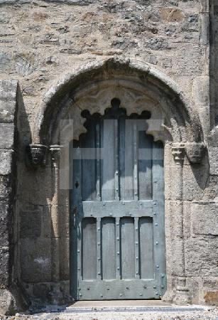 Eine Seitentür der Kirche St. Salomon in La Martyre, Bretagne