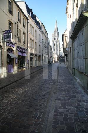 Straße mit Blick auf die Kathedrale in Bayeux, Normandie (2)