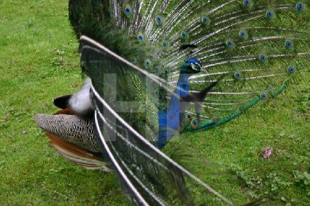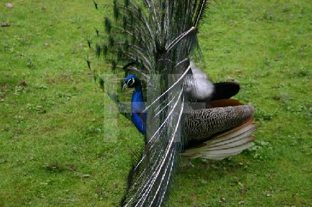 Balzender Pfau im Forstbotanischen Garten, Köln; auch von hinten ein wunderschöner Anblick.