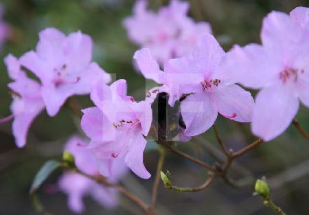 Eine Hummel wartet zwischen Azaleenblüten auf die wärmenden Sonnenstrahlen